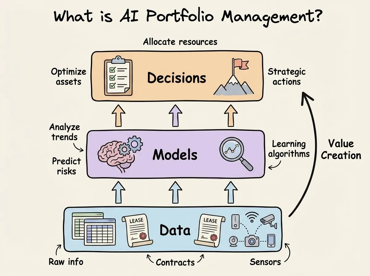 At its simplest, AI Portfolio Management is the use of artificial intelligence to collect, analyze, and act on real estate portfolio data.