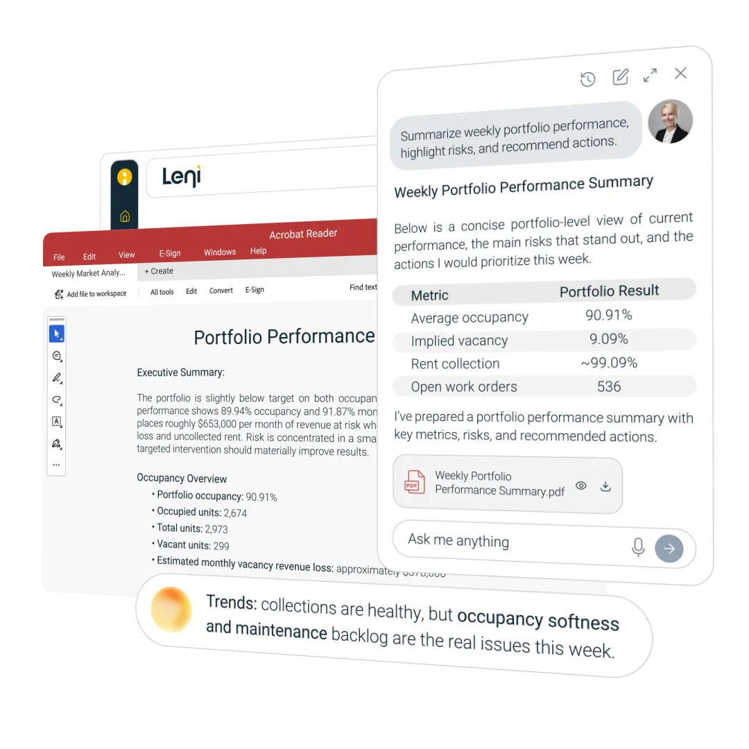 Ask questions across your entire portfolio or any single property and get straightforward answers, Excel, presentations, & Memos.