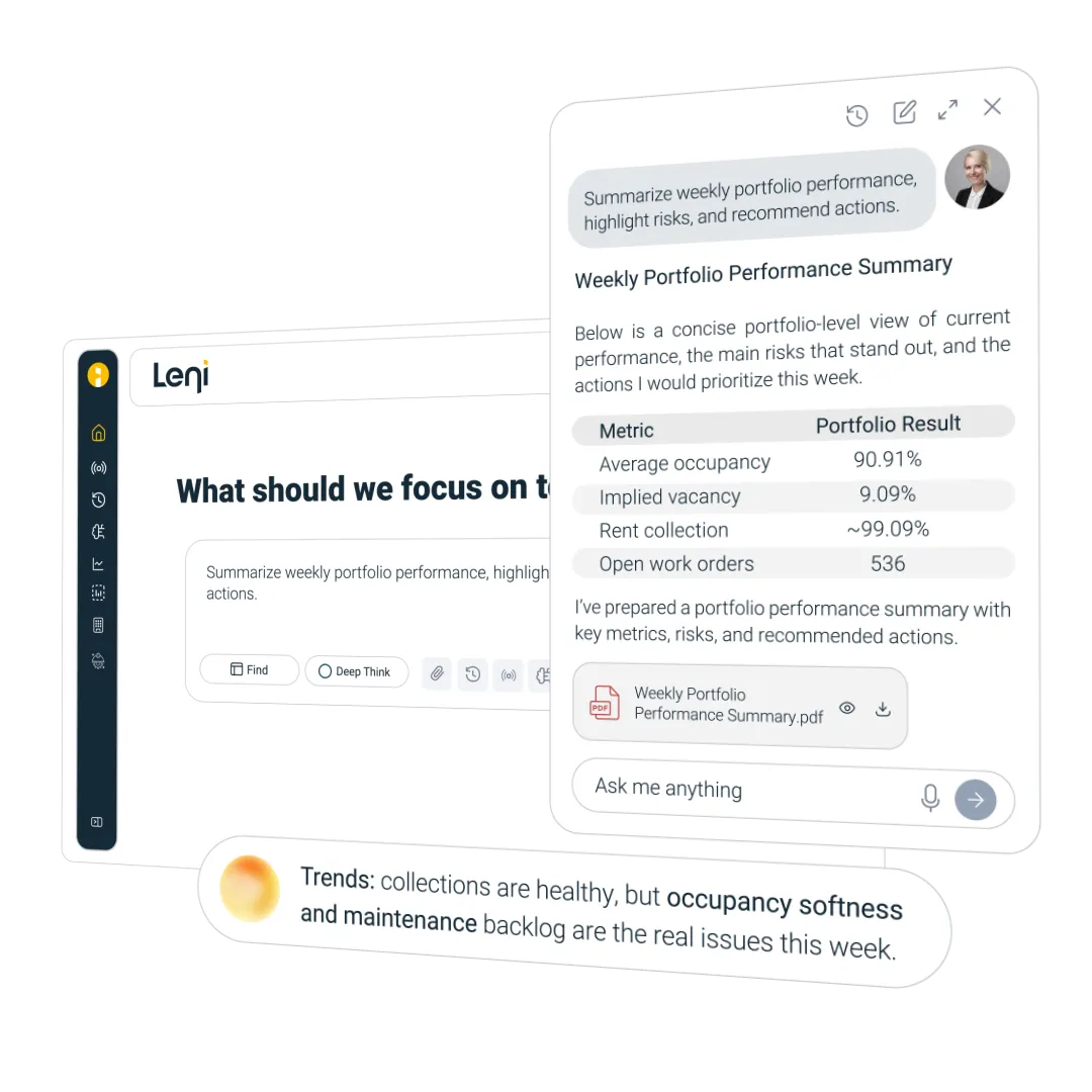 Ask questions across your entire portfolio or any single property and get straightforward answers, Excel, presentations, & Memos.